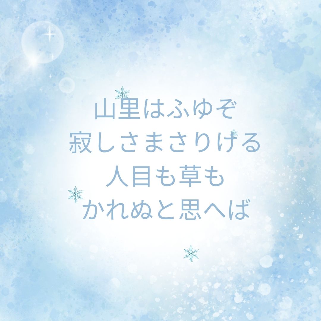 今日の和歌は「山里はふゆぞさびしさまさりける人目も草もかれぬと思えば」